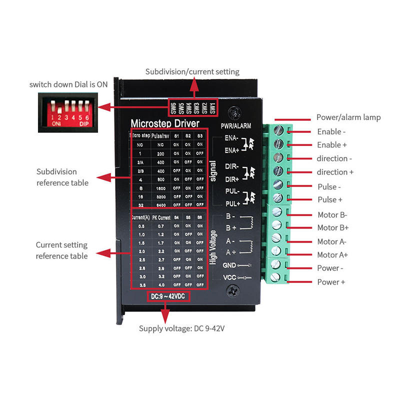 Controlador de motor paso a paso TB6600 controlador de motor paso a paso CNC de 2 fases NEMA 17 23 corriente de motor paso a paso por debajo de 4.0A