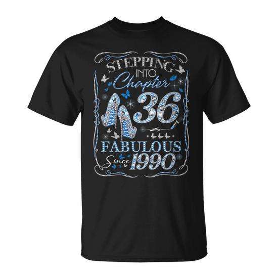 Camiseta para mujer Stepping Into Chapter 36 Fabulous Since 1990, manga corta, cuello redondo, estampado digital, para adultos y mujeres