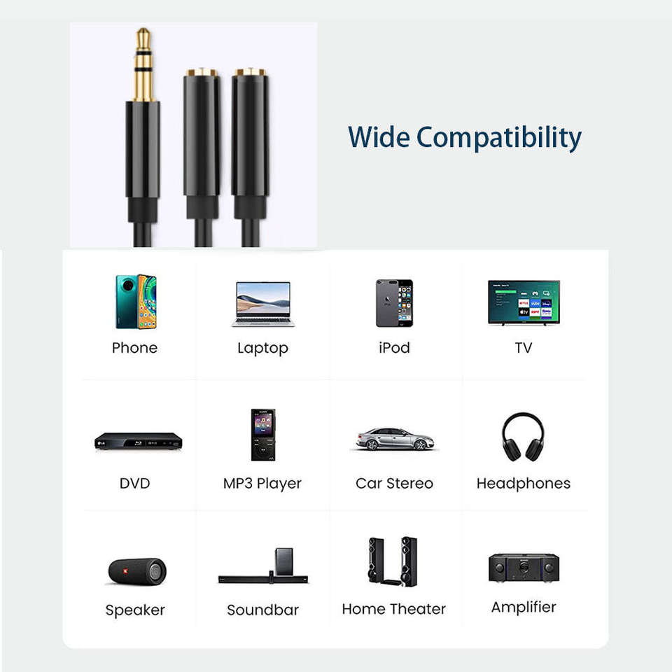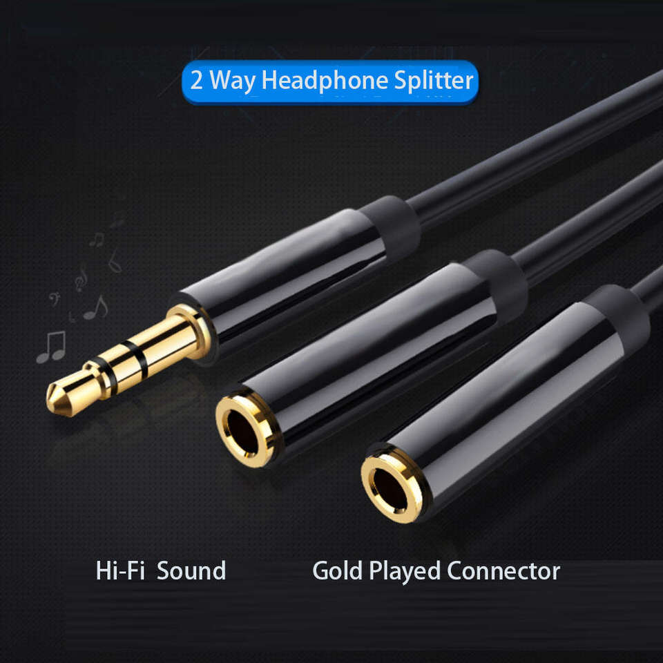 Divisor de auriculares estéreo doble divisor de auriculares de 2 vías 3,5mm Y Cable divisor de Audio para auriculares