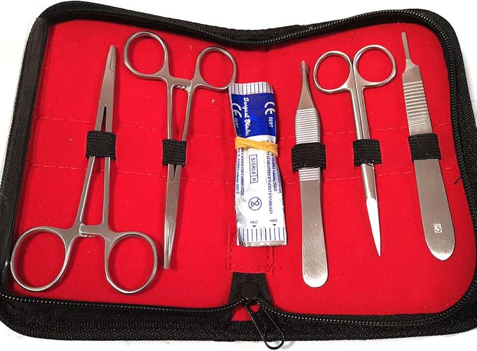 Kit de Cirugía Menor Estéril, Juego de Instrumentos Quirúrgicos de Acero Inoxidable, Kit Médico Reutilizable con Tijeras, Pinzas y Espátula para el Cuero Cabelludo