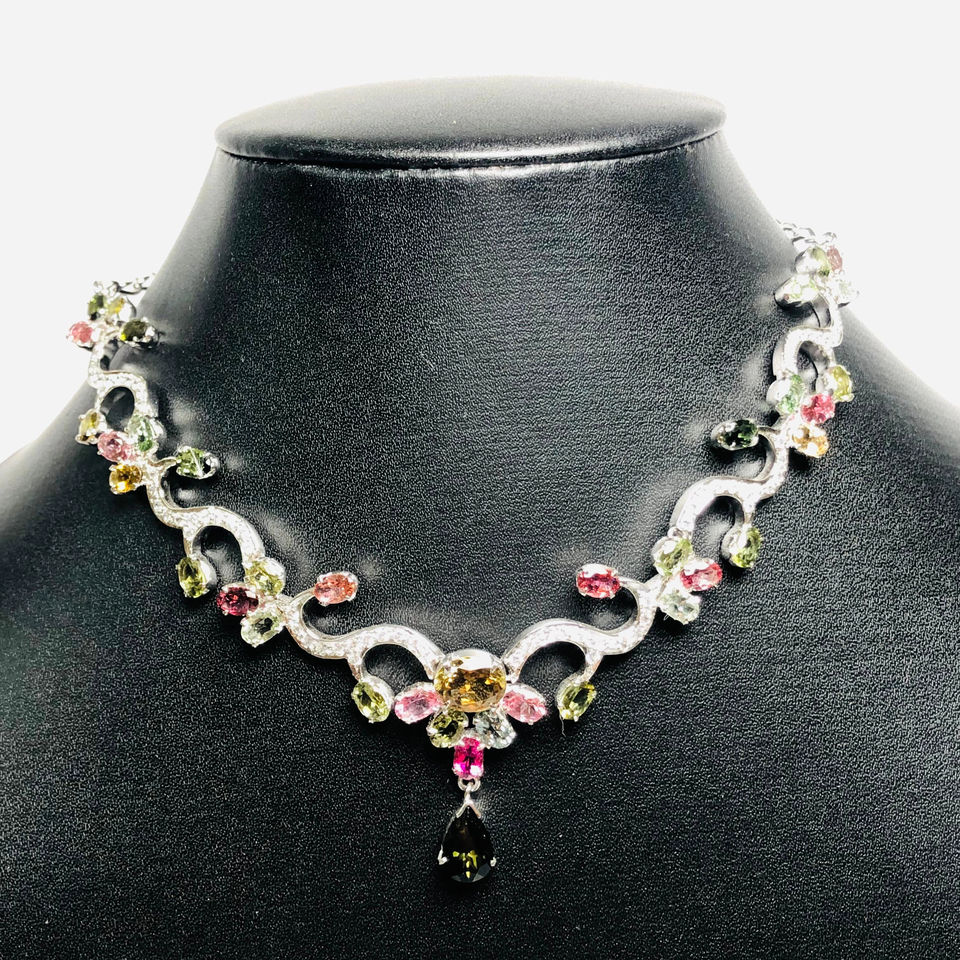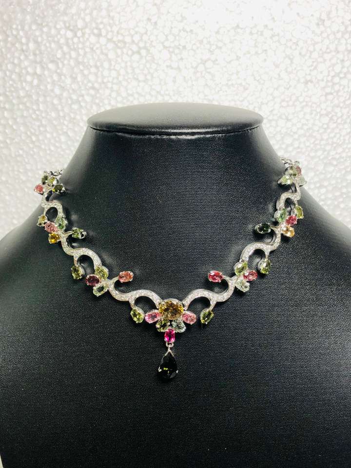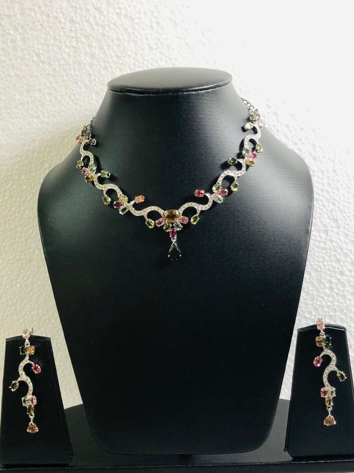 Producto:Collar de plata y Earing con la piedra preciosa multi natural del Tourmaline