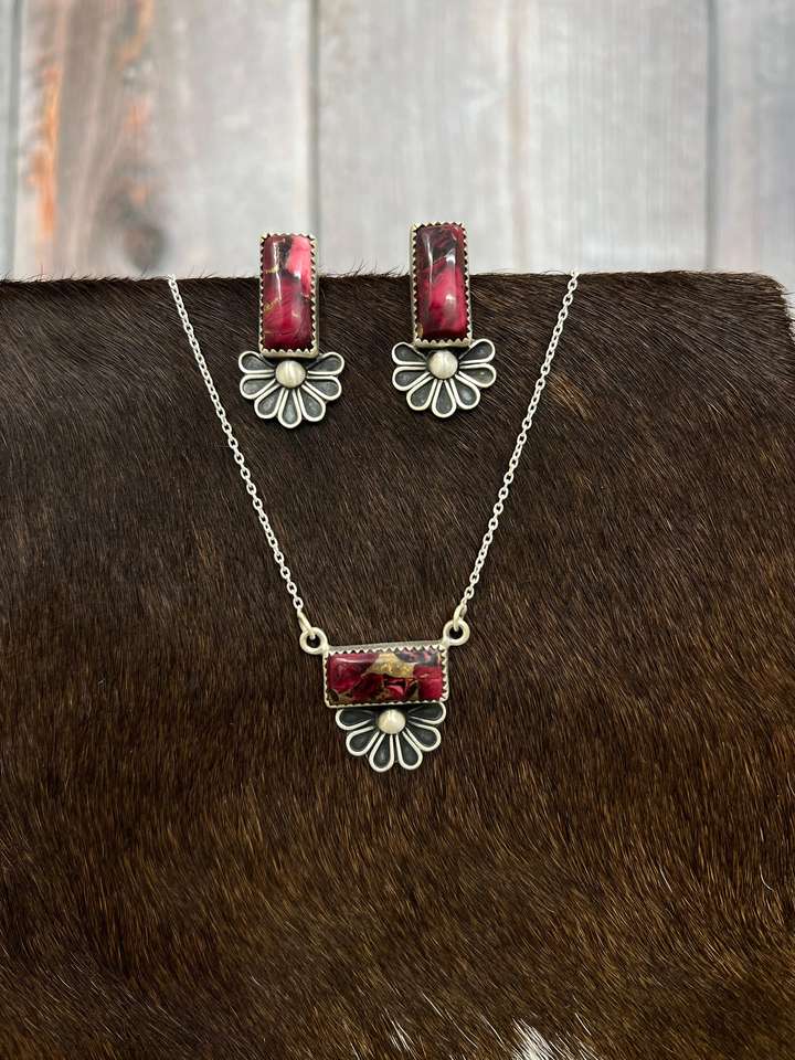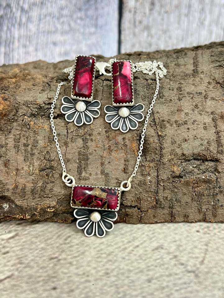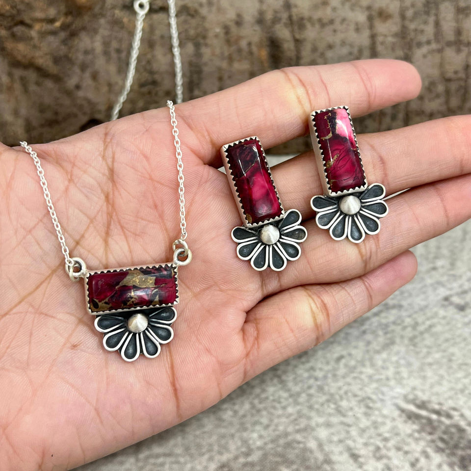Nombre del producto:Plata esterlina rojo dahilia turquesa joyería hecha a mano conjunto