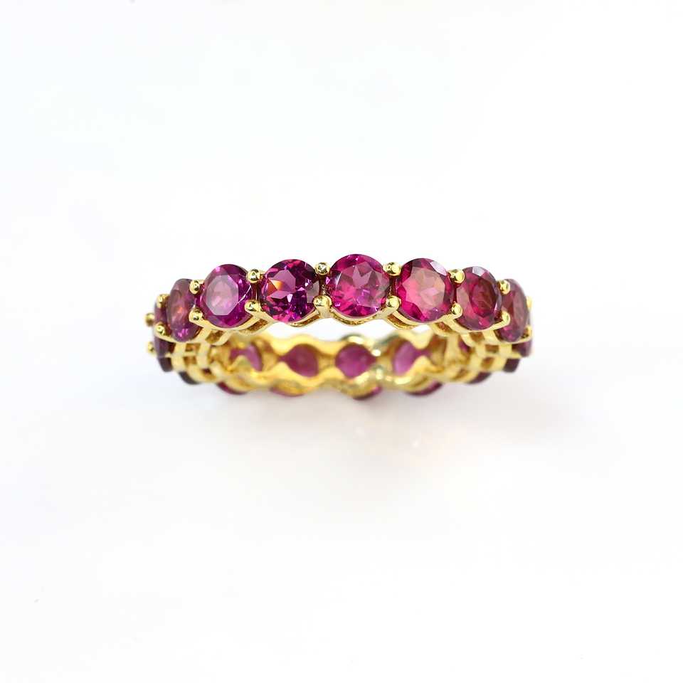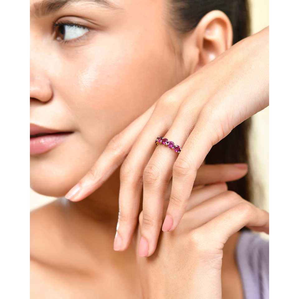 Juego de 925 puntas de plata esterlina Anillo de eternidad de rodolita redonda en oro/plata/oro rosa