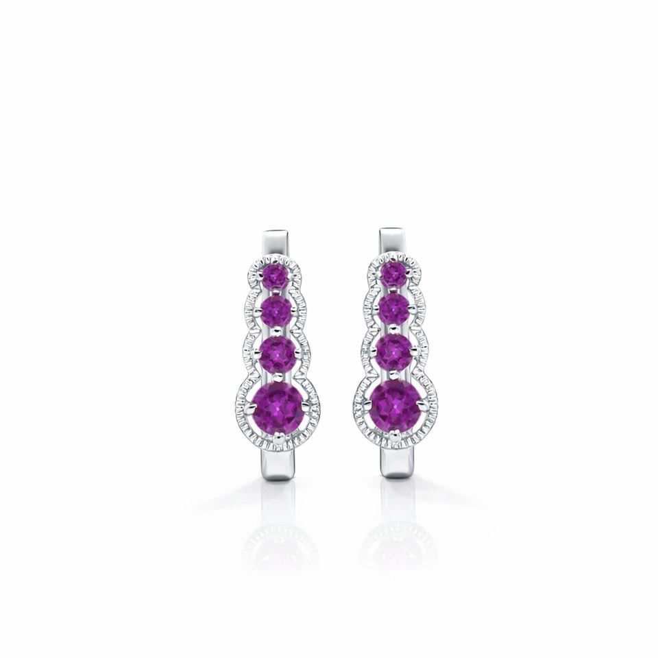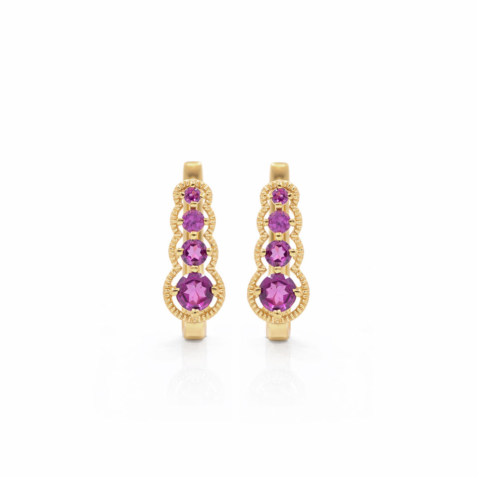 Pendientes Graduados de Plata de Ley 925 con Granate Rodolita, Diseño Cónico Piramidal, Cierre con Baño de Oro de 1 Micrón y Rodio, de Lujo