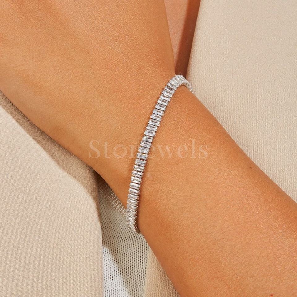 Número de Modelo:Silver Baguette Tennis Bracelet
