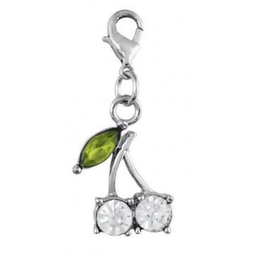Abalorio de cereza de plata de ley con hoja verde y cristales transparentes para la fabricación de joyas