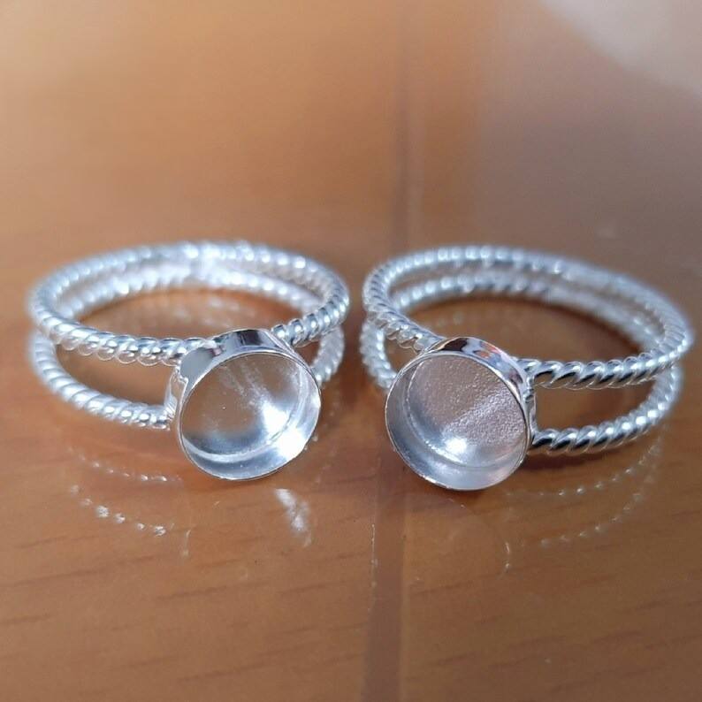 Ajuste de anillo de bisel redondo de 4MM de cuerda doble de plata esterlina, montaje en blanco para joyería personalizada de resina, Base de anillo DIY, banda trenzada