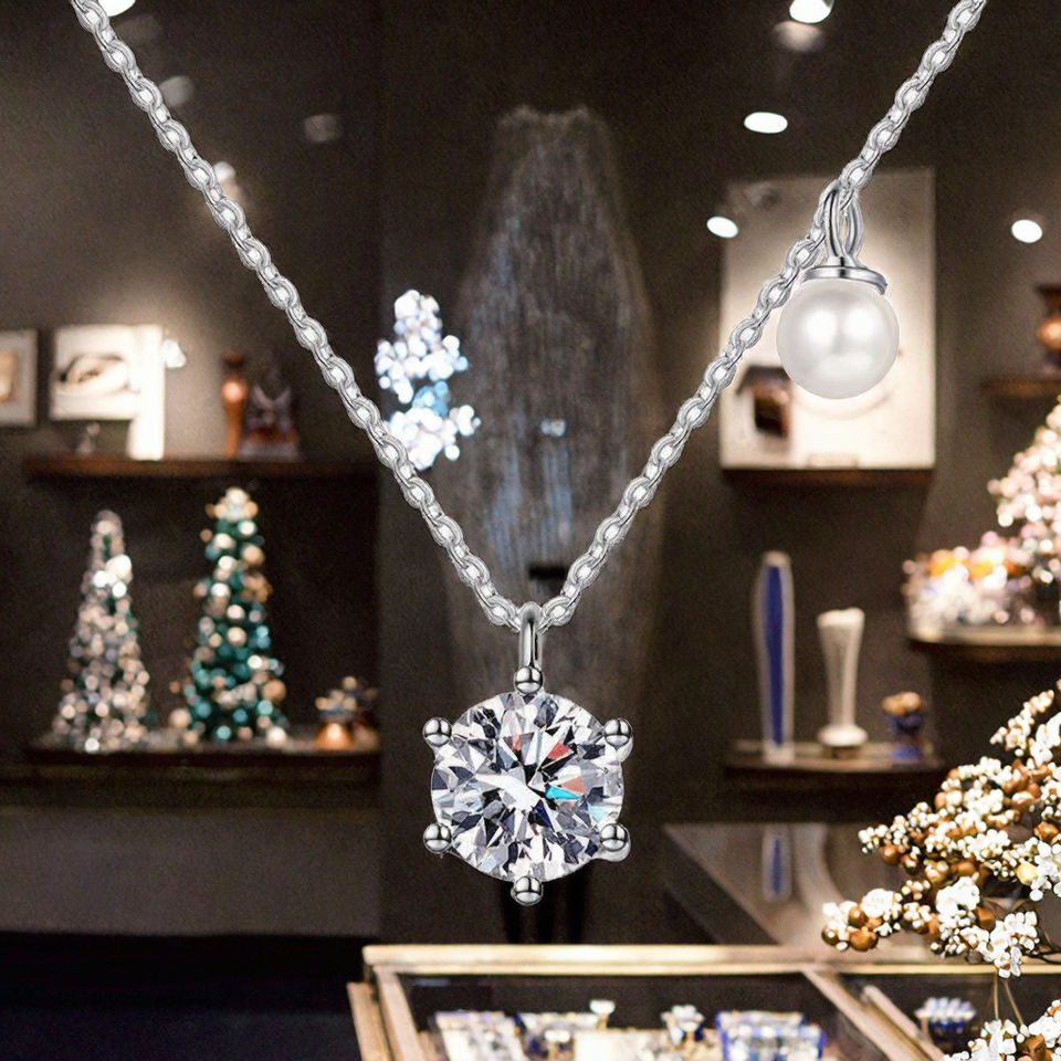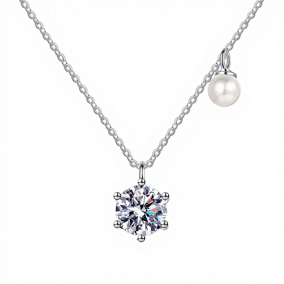 Collar con colgante de moissanita en forma de pez de plata de ley con incrustaciones, cadena de clavícula de perlas de agua dulce para hombre, tercera parte