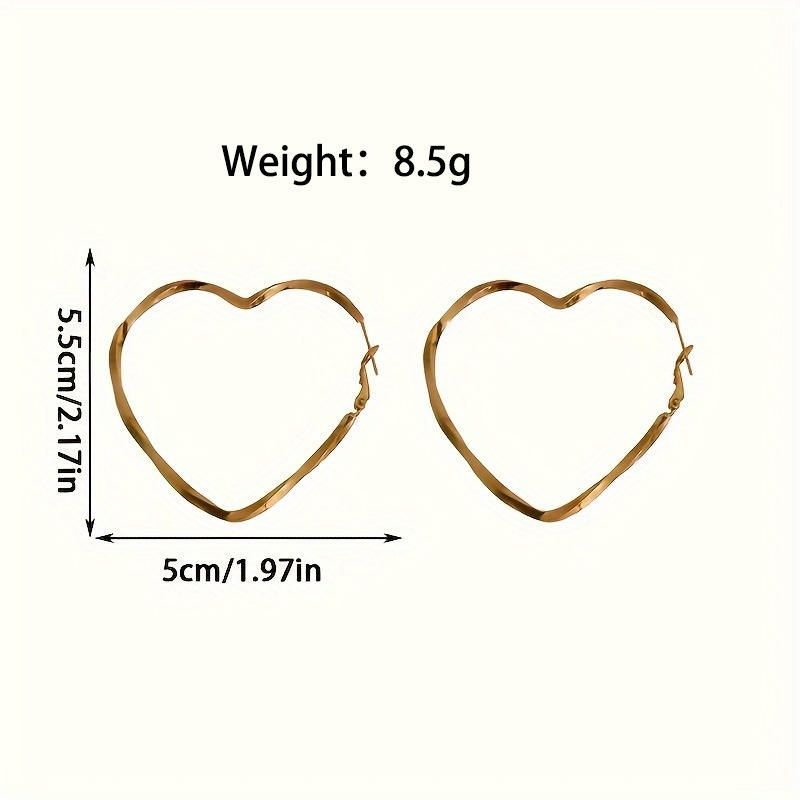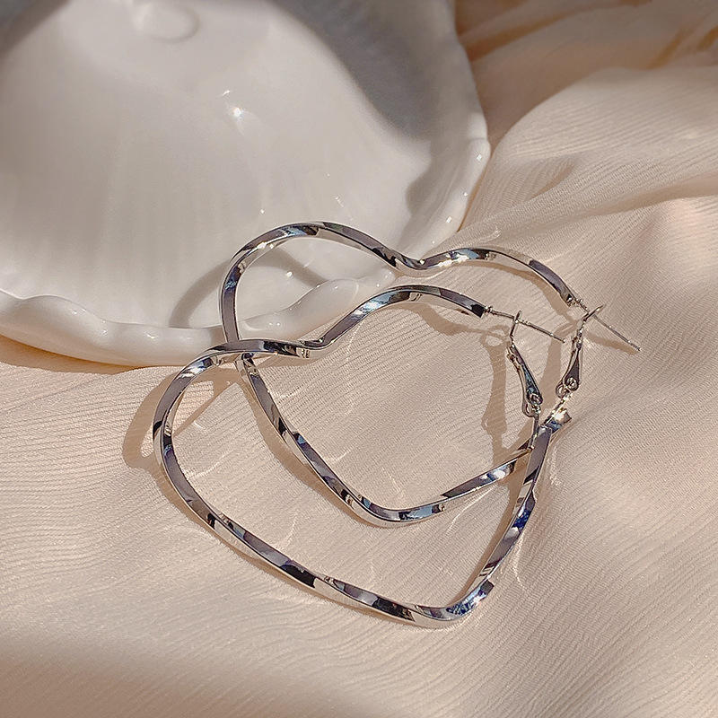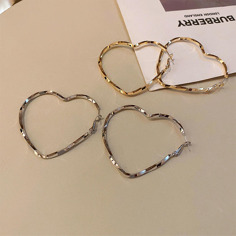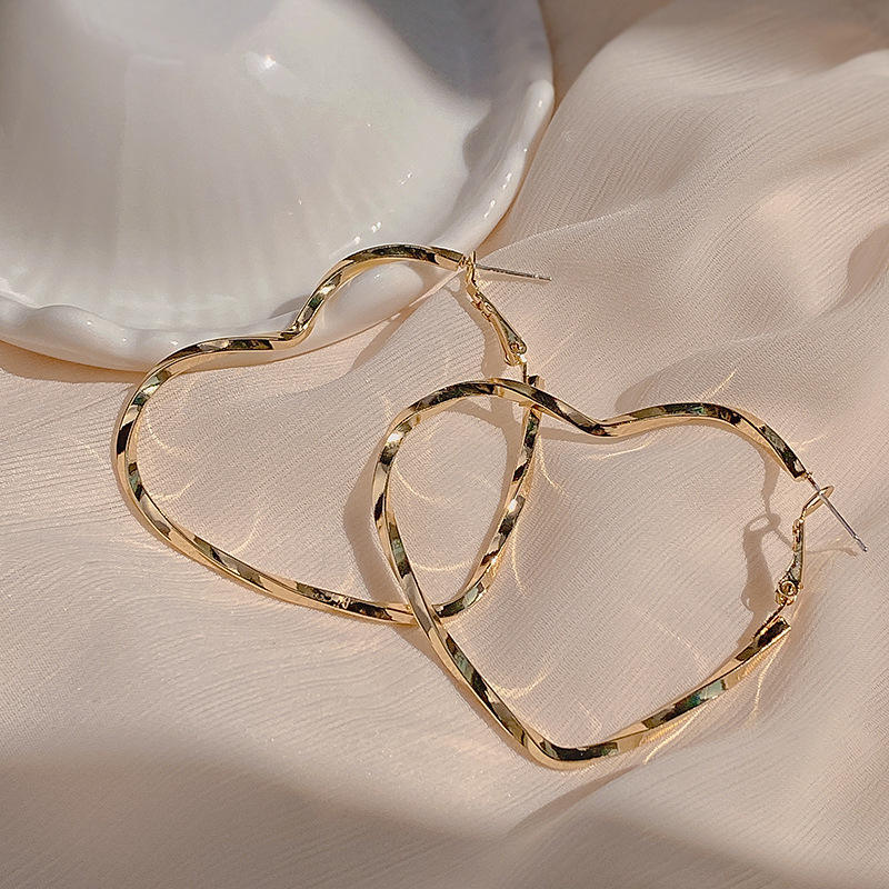 Pendientes de Aro Grandes de Aleación con Forma de Corazón, Estilo Retro Exagerado, Metálicos Minimalistas, para Mujer, de Moda, Plateados y Chapados en Oro de 14K, Joyería de Moda, Regalo