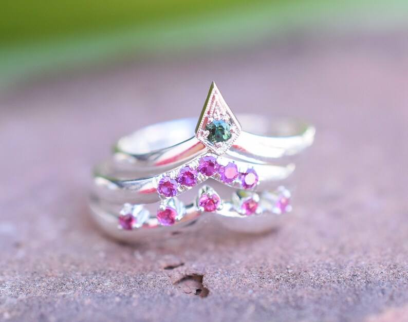Palabras clave:Anillo de Turmalina Verde Natural, Alianza de Promesa Verde para Bodas