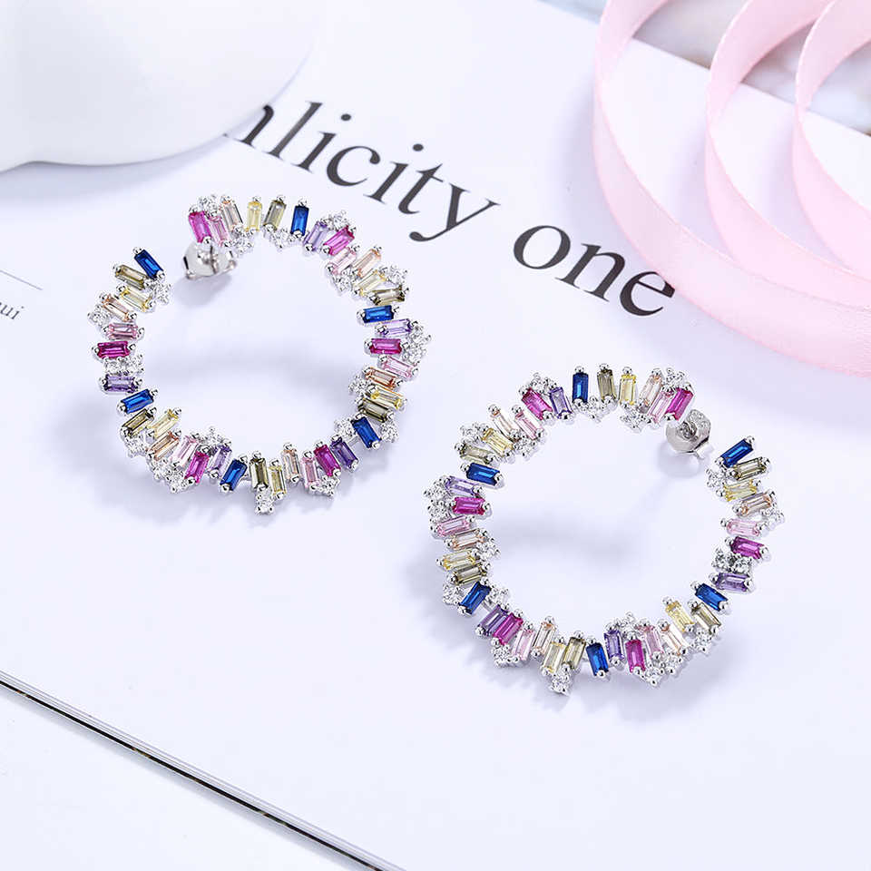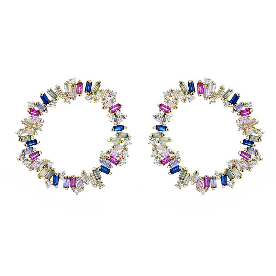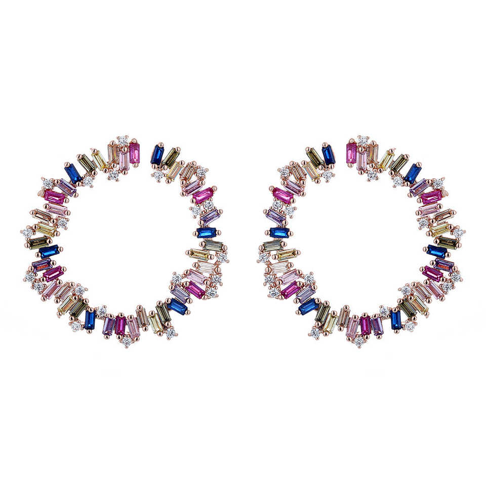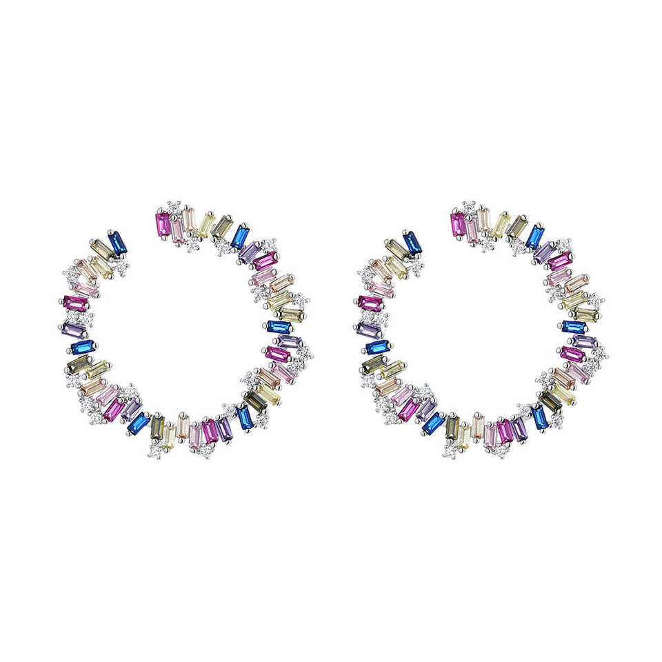 Pendientes de aro J multicolor de plata de ley con cristales
