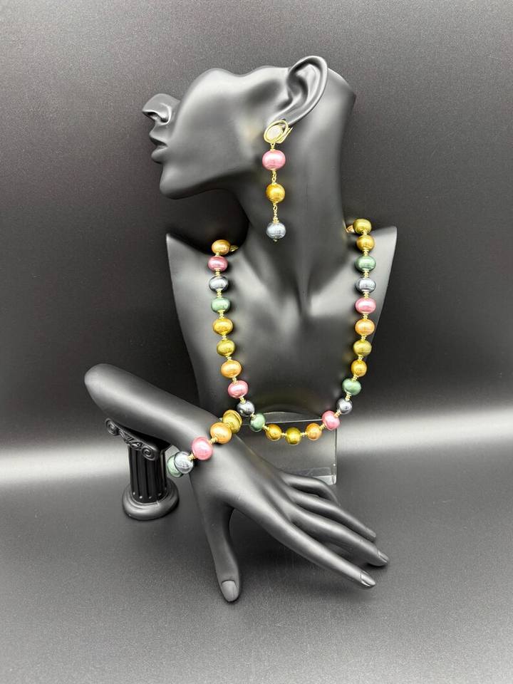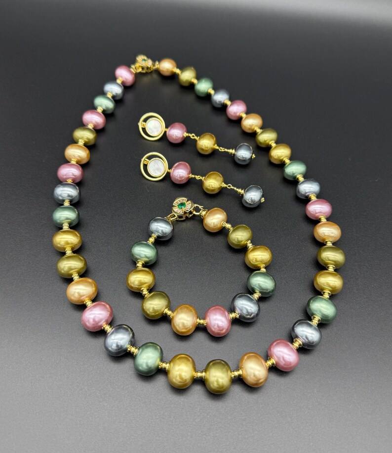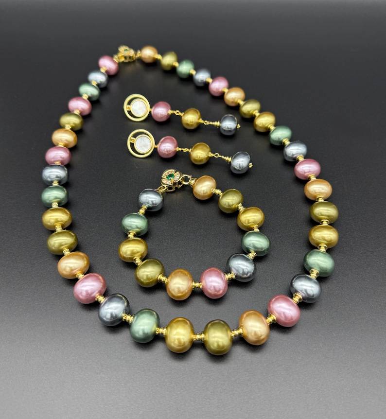 Collar, Pulsera y Pendientes Victorianos de Plata de Ley con Perlas de Concha Multicolor, Joyería Hecha a Mano, Regalo Elegante y a la Moda