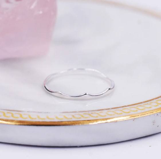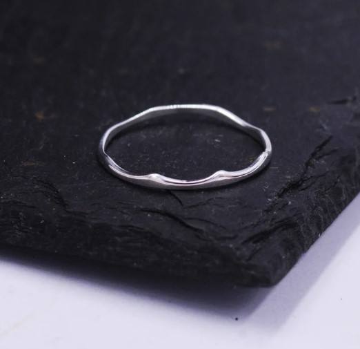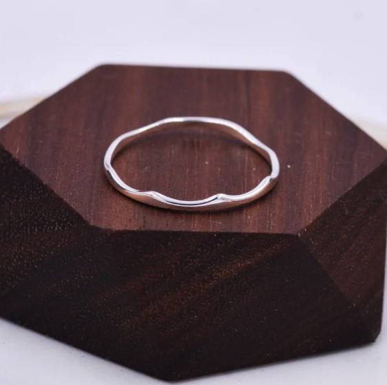 Anillo Ondulado de Plata de Ley, Anillo Delgado y Delicado, Anillo Apilable, Anillo con Diseño de Ola