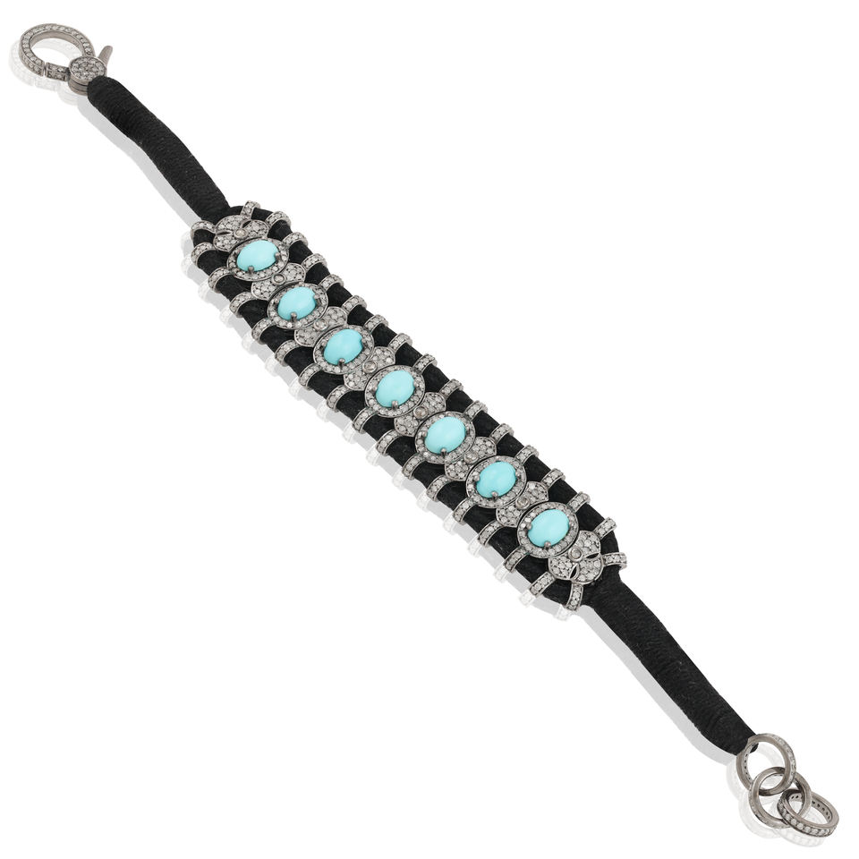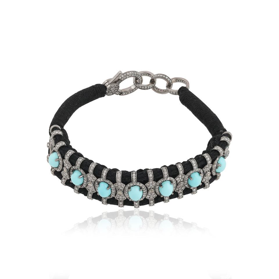 Pulsera de Hilo de Plata de Ley con Turquesa. Una exquisita pulsera de hilo de plata de ley 925 con vibrantes turquesas cabujón.