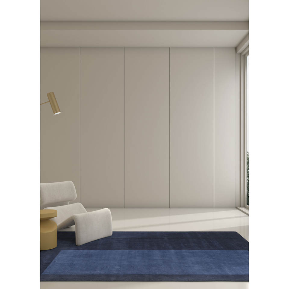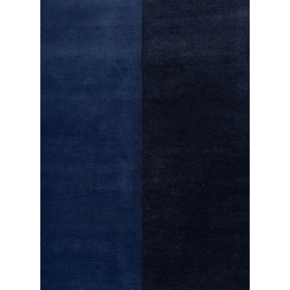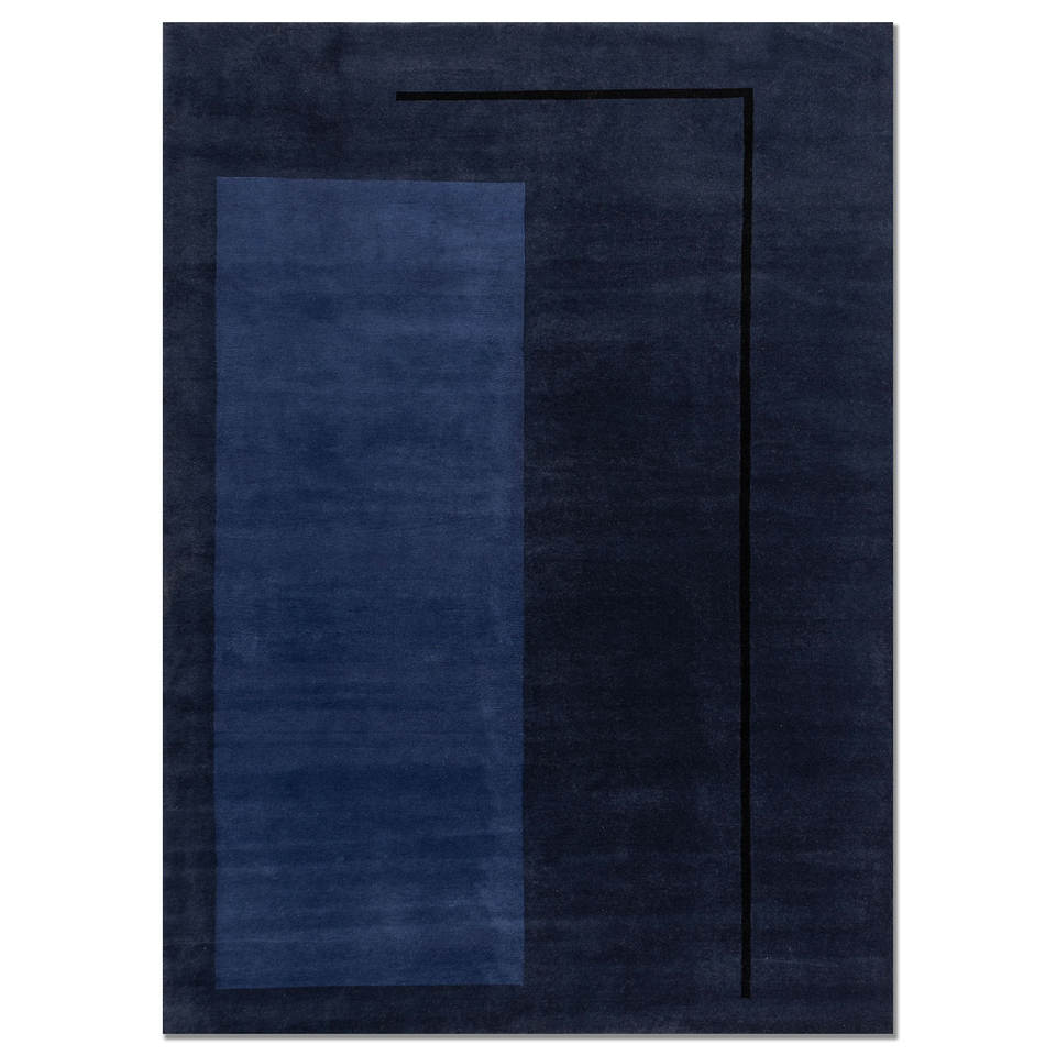Alfombra de Lana Anudada a Mano Azul Sthir AIWL-3012 Rectangular 9x12 con Patrón Abstracto para Decoración de Sala de Estar y Uso en Pasillos