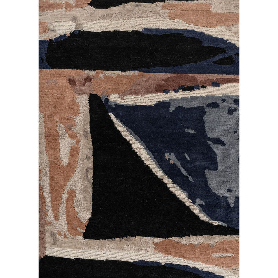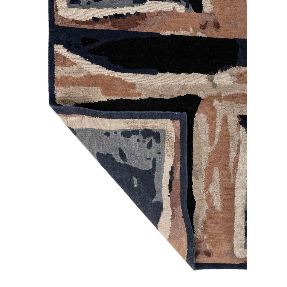 Alfombra de Lana Azul Anudada a Mano Sthir, Diseño Abstracto de Gran Tamaño para el Hogar, para Sala de Estar o Dormitorio - Modelo Aiwl-3001
