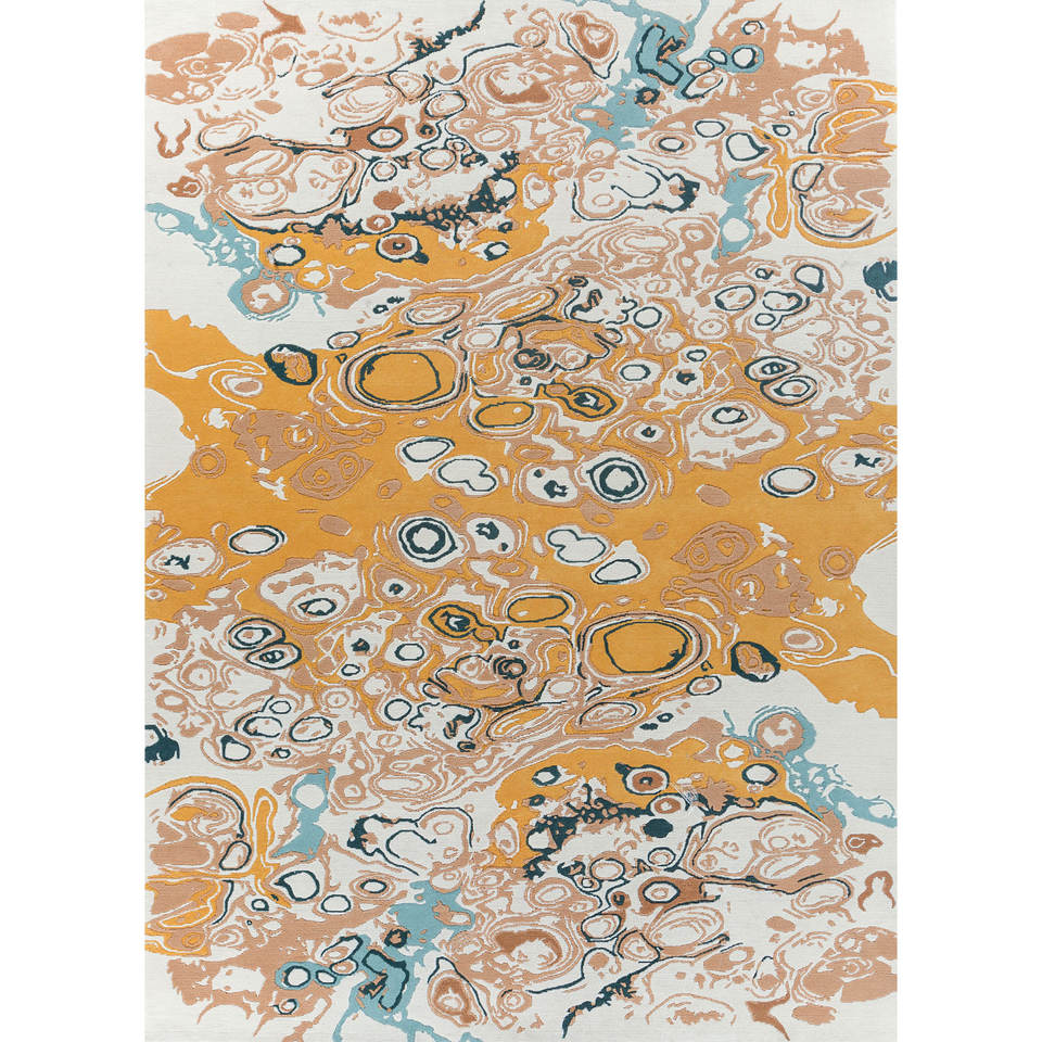 Alfombra de Lana Anudada a Mano Sthir Ivory Piwl-7006 con Patrón Abstracto para Decoración del Hogar, Estilo Tabriz para Sala de Estar y Dormitorio, Hecha a Mano