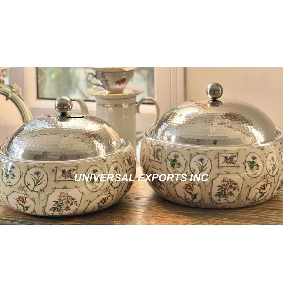 Juego de Dos Ollas Calientes con Diseño Personalizado Meena, Calentador de Comida de Lujo, Estilo Clásico, Elegante y Moderno, Nueva Cacerola de Metal