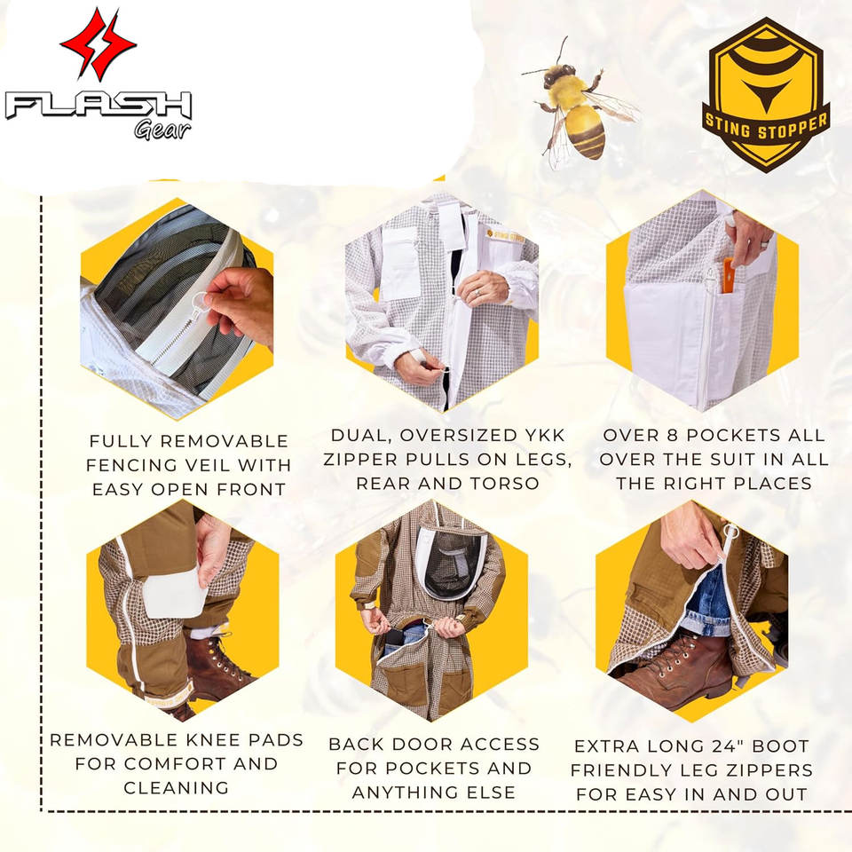 Traje de Apicultor Triple Capa Ventilado Antiestático con Protección de Nivel, Apto para Botas, Cremalleras de Doble Anillo de Fácil Apertura y Velo