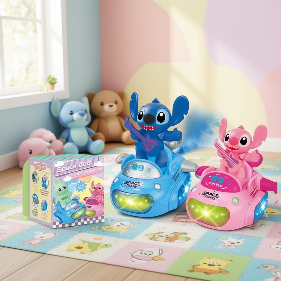Juguete de montar Stitch Space Boat, funciona con pilas, para niños de 2 a 4 años, vehículo de juego unisex de plástico