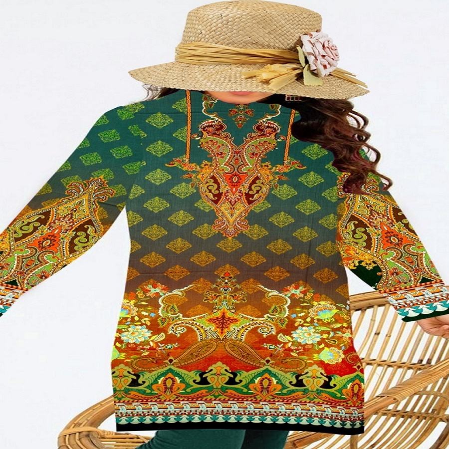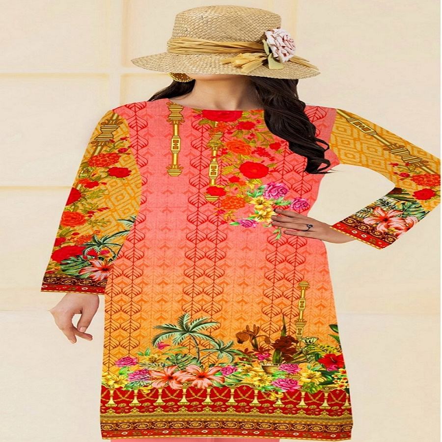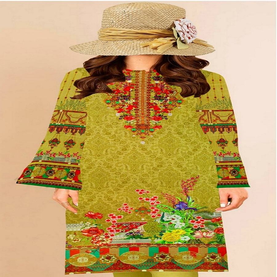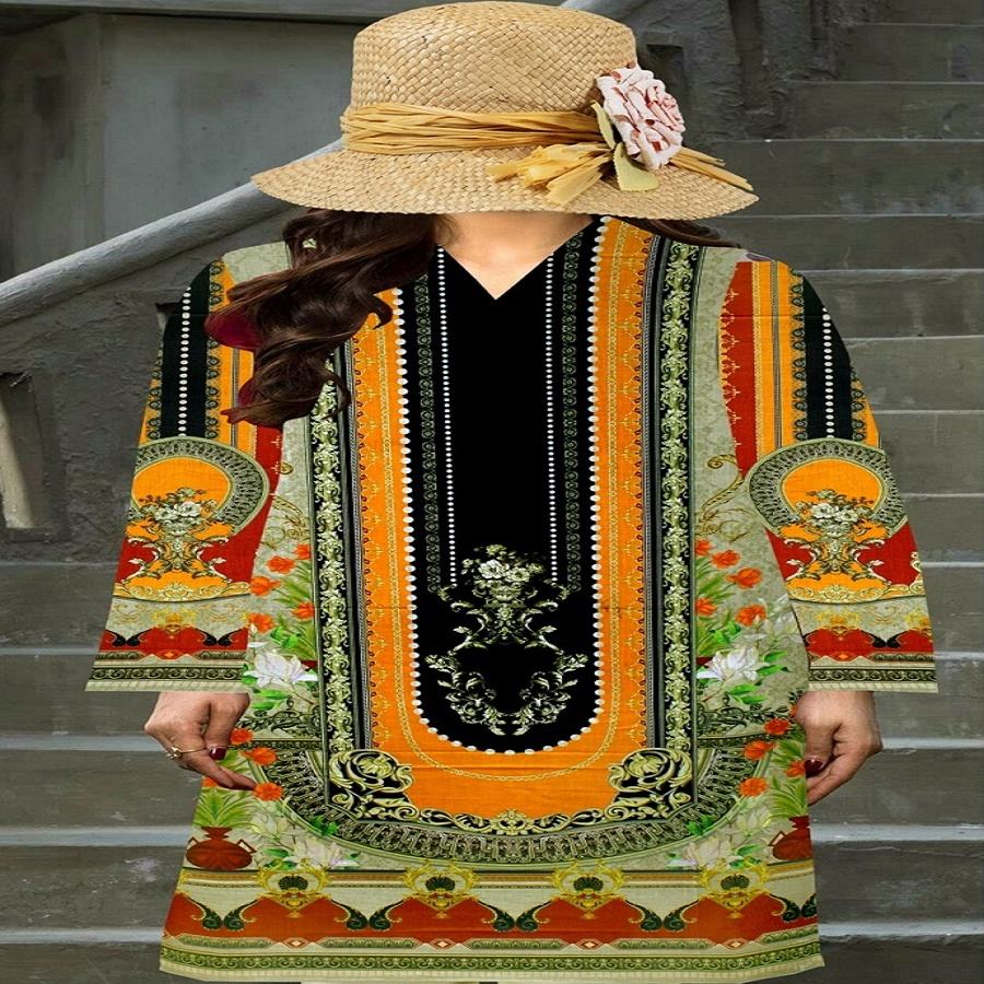AF Fabrics Vestido cosido de 1 pieza de alta calidad Hermosas camisas de césped con estampado digital elegante para damas hechas de lino de algodón