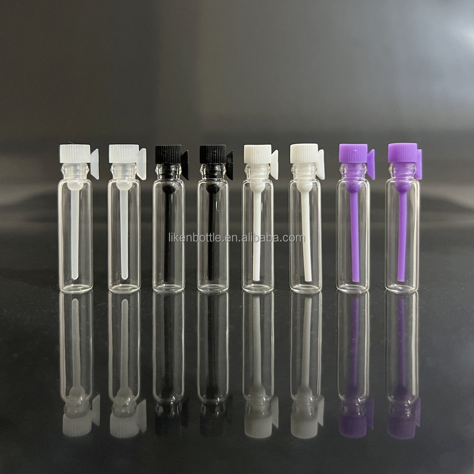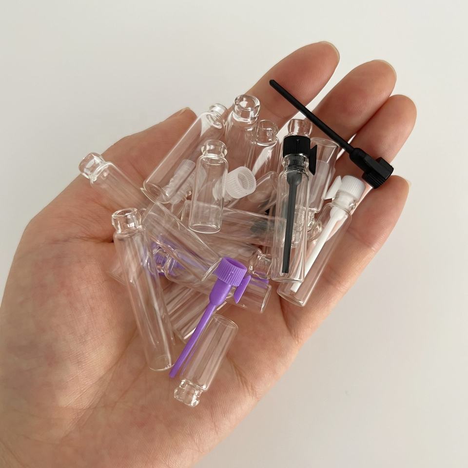 Botella de cristal pequeña con tapón de plástico, frasco transparente de 0,5 ml, 1ml, 2ml