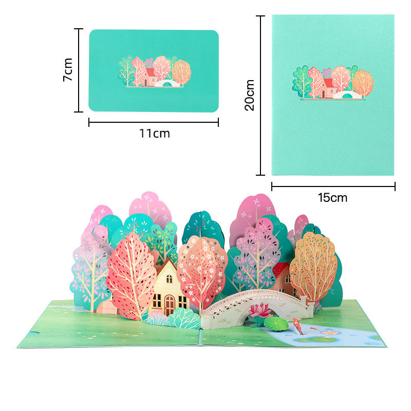 Tarjeta 3D Pop-up de Papel con Diseño de Bosque de Árboles Verdes de Verano, Corte Láser, Impresión UV, Laminado Mate, Tarjetas de Regalo DIY, Disponibles en Stock