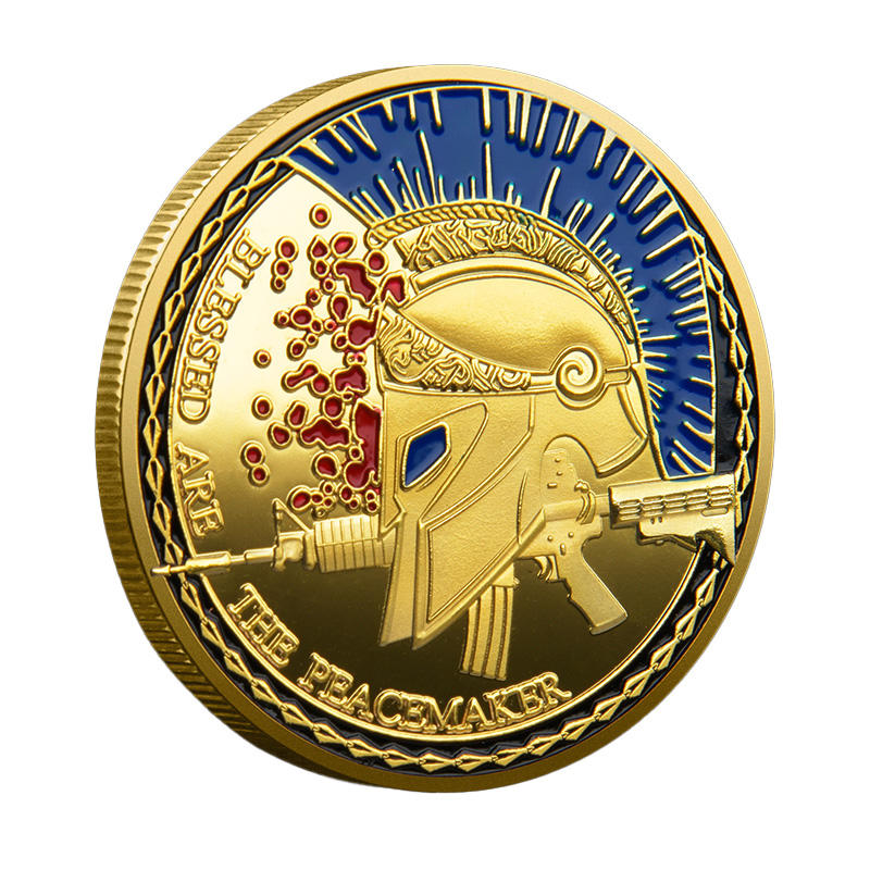 Moneda Conmemorativa Personalizada de Metal, Diseño de Casco Romano con Relieve de Doble Arma de Fuego y Inscripción Bíblica, Tema del Mediator de la Paz