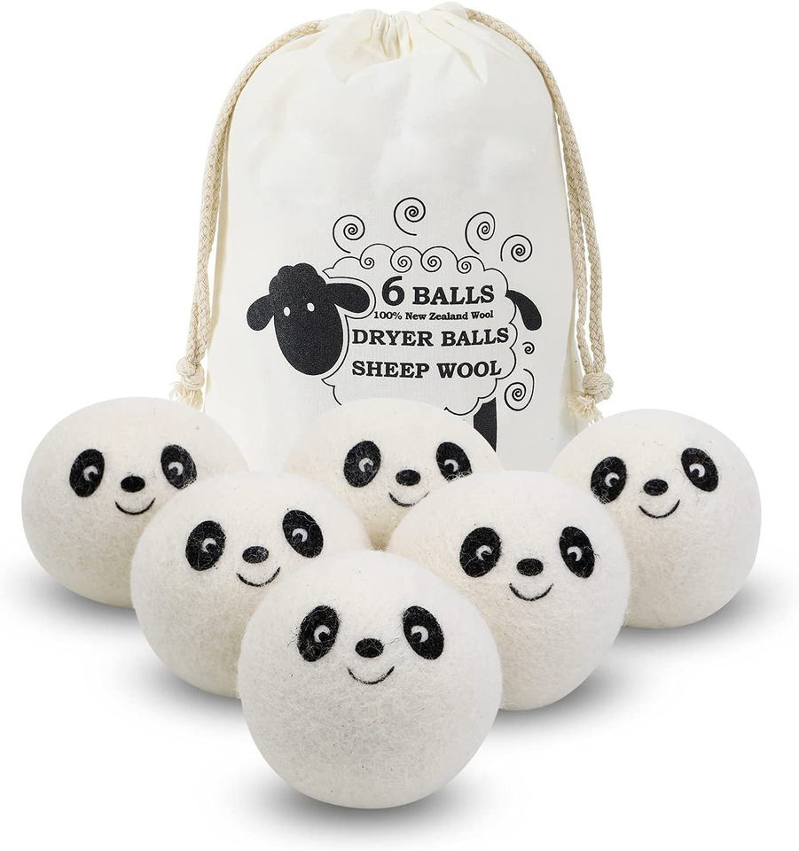 Paquete de 6 bolas de secadora de lana de lavandería orgánica para el hogar de 7cm reutilizables ecológicas personalizadas para lavadora, paquete de 6 bolas orgánicas