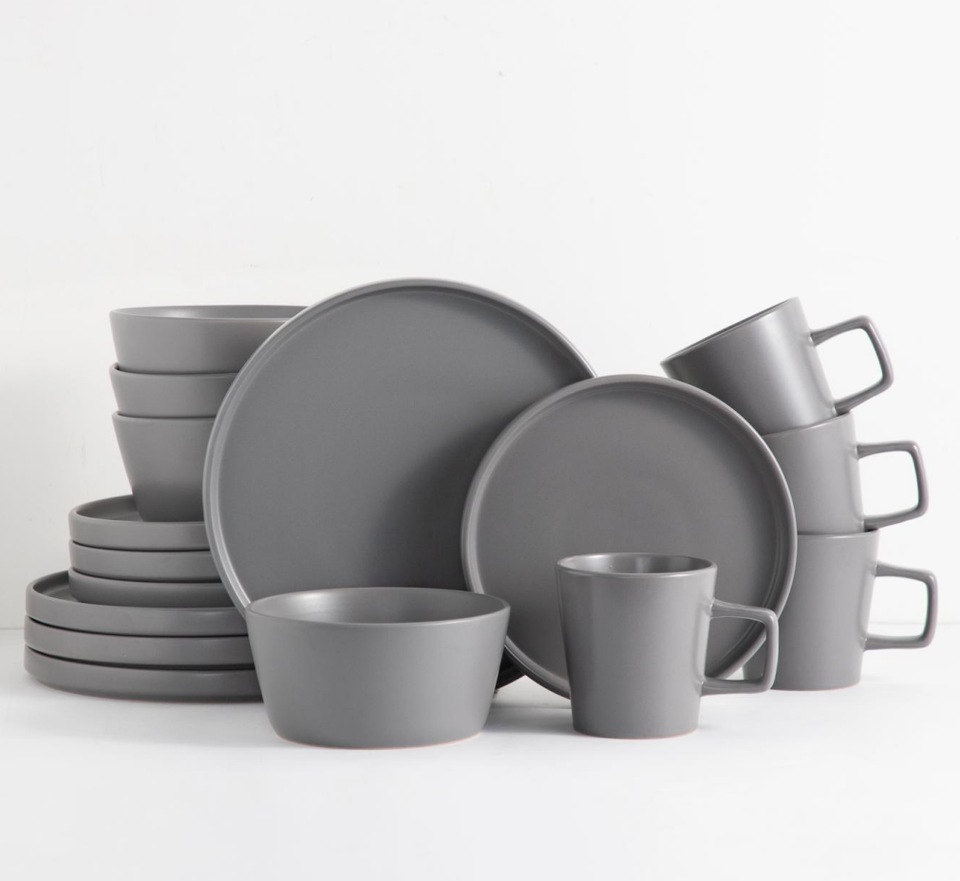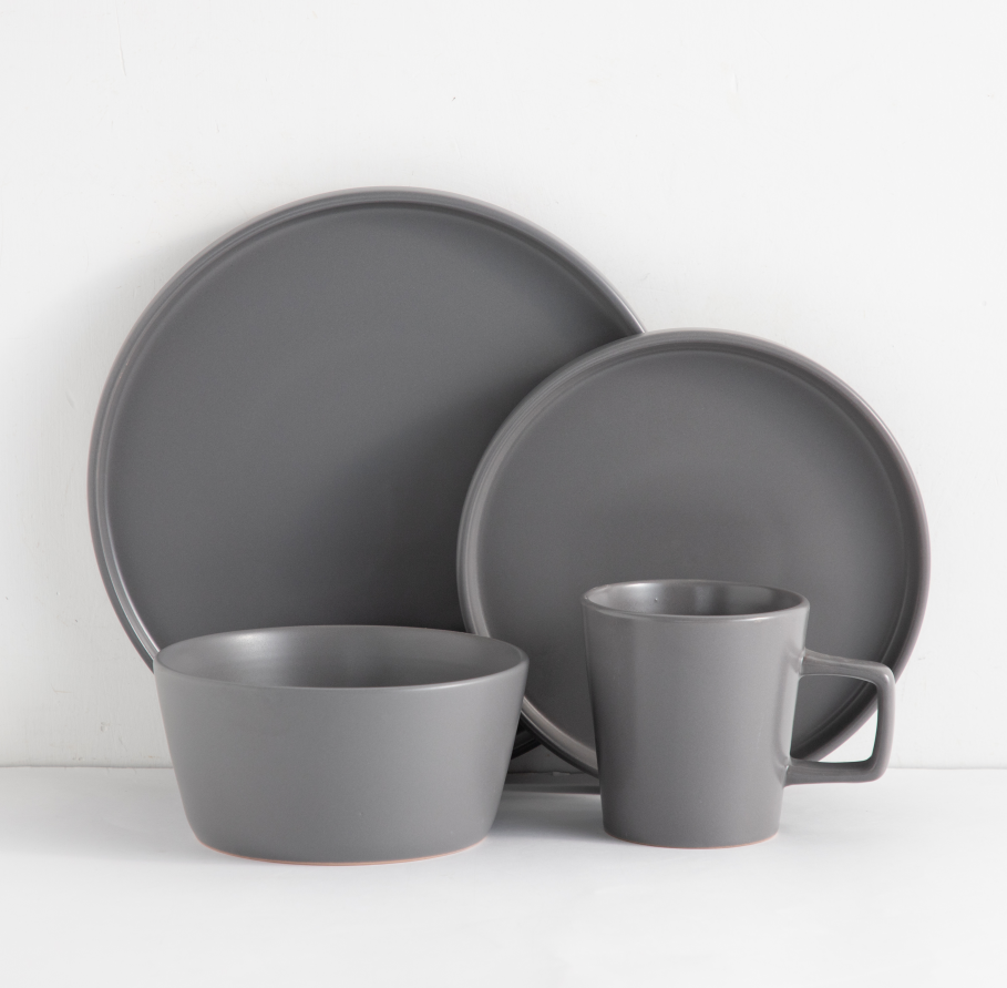 Juego de Vajilla de Cerámica Gris Mate, Platos, Tazones y Tazas de Gres para 4 Personas, para Hogar, Hotel, Restaurante, Vajilla al por Mayor