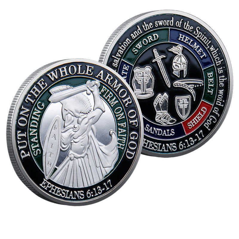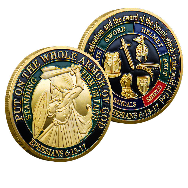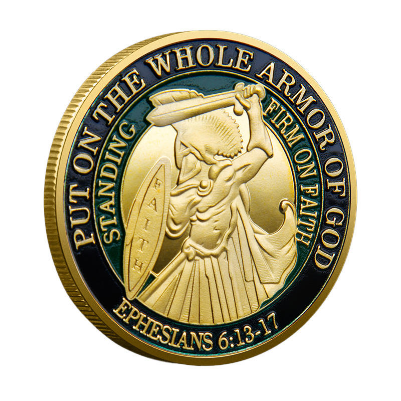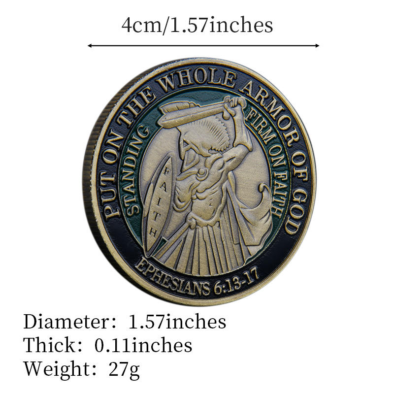 Moneda Conmemorativa de Metal en Tres Estilos de Color con Patrón de Caballero, Versículo Efesios 6:13-17: Póngase TODA LA ARMADURA de DIOS