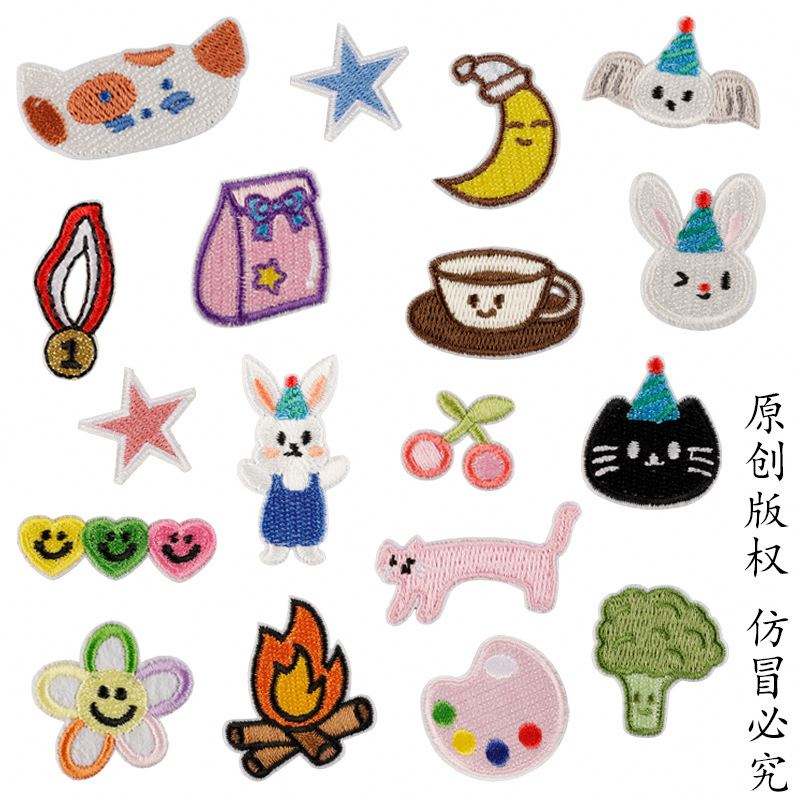 Parche Termoadhesivo Mini de Bordado Lindo con Diseños de Café, Conejo, Luna, Estrella, Sonrisa y Gato para Etiqueta de Equipaje y Decoración de Bolsos