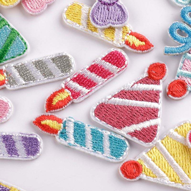 Parche termoadhesivo mini de bordado lindo con diseño de vela y gorro de cumpleaños de primavera para decoración de equipaje y bolsos