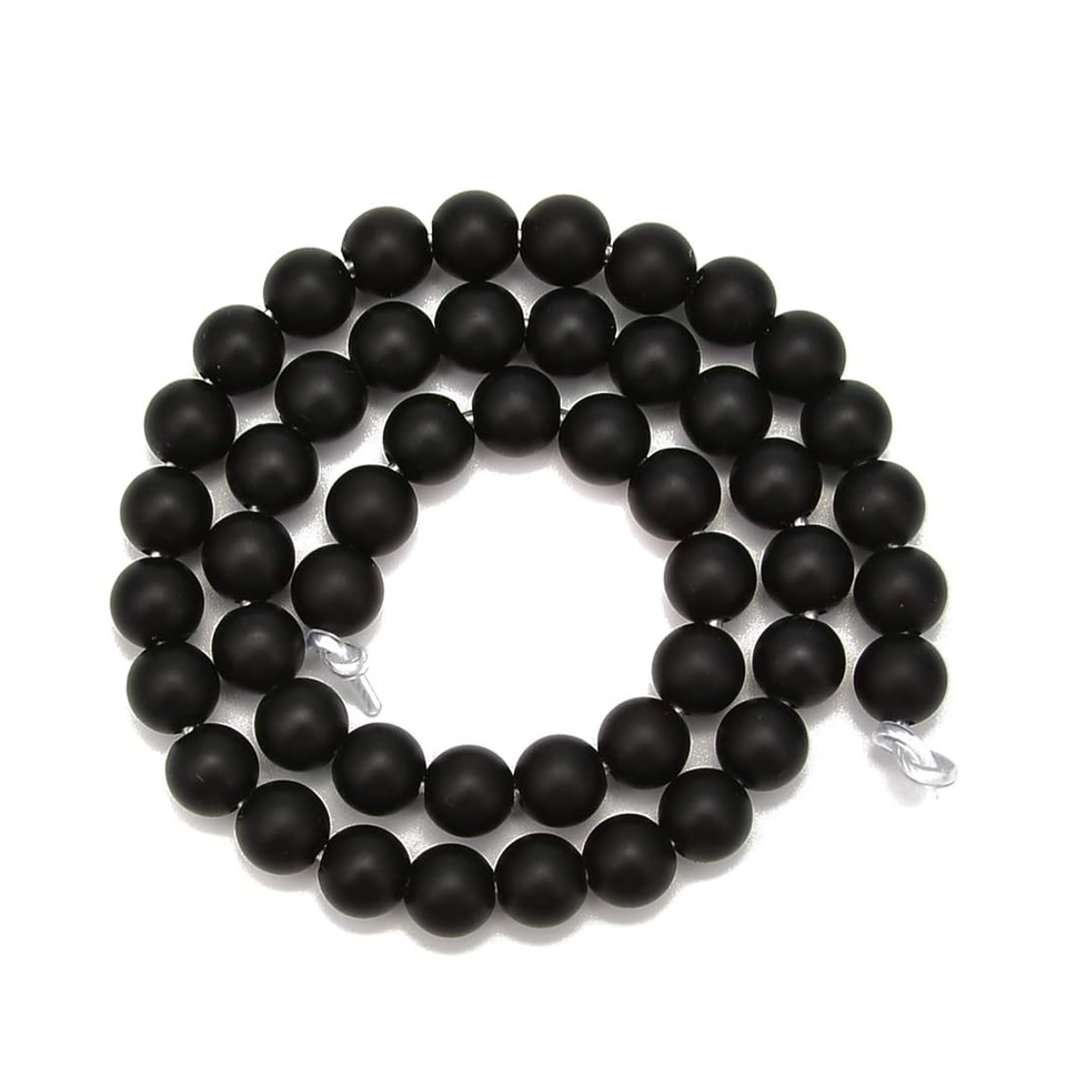 Cuentas de Piedra Negra Mate, Hilo de Cuentas, Joyería de Piedra, Gema Suelta y Lisa, Collar de Piedras Curativas, Cuentas de Cristal Natural al por Mayor