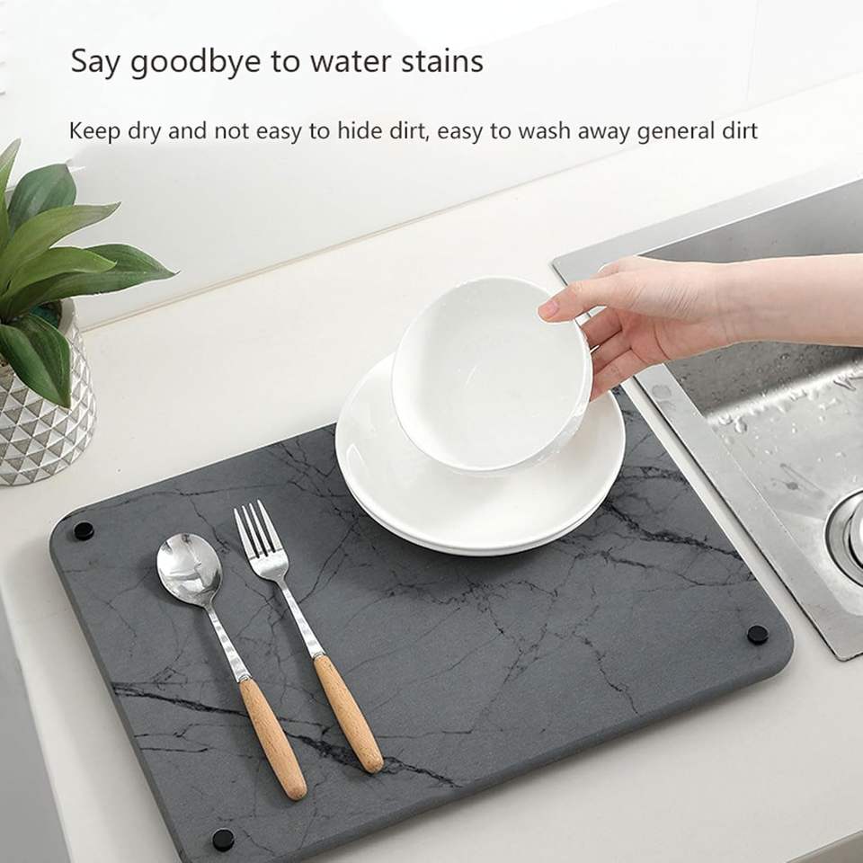 Tapete de Piedra para Secar Platos para Encimera de Cocina