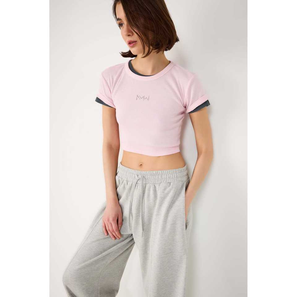 Camiseta Corta Informal de Algodón 100%, Cuello Redondo, Acanalada