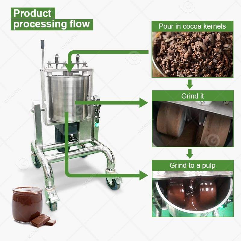 Molino de chocolate de pequeña capacidad para procesamiento de cacao, tanque de fusión y templado de grasa de 2kg, 10kg, 40kg, 50kg