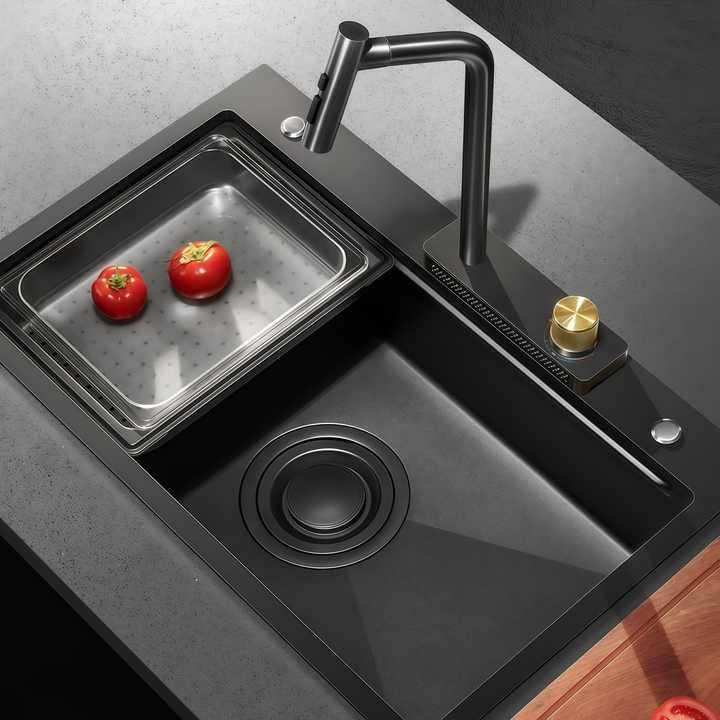 Fregadero de Cocina Nano Gris con Patrón de Piedra, Acero Inoxidable 304, Gran Tamaño, Un Solo Tazón, Antirrayas, Duradero para el Hogar