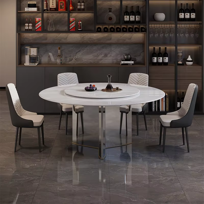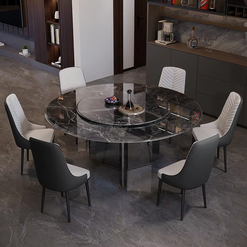 Mesa de comedor de losa de piedra, mesa de comedor giratoria redonda, mesa de comedor de losa de piedra de lujo ultra-cristal y sillas de comedor