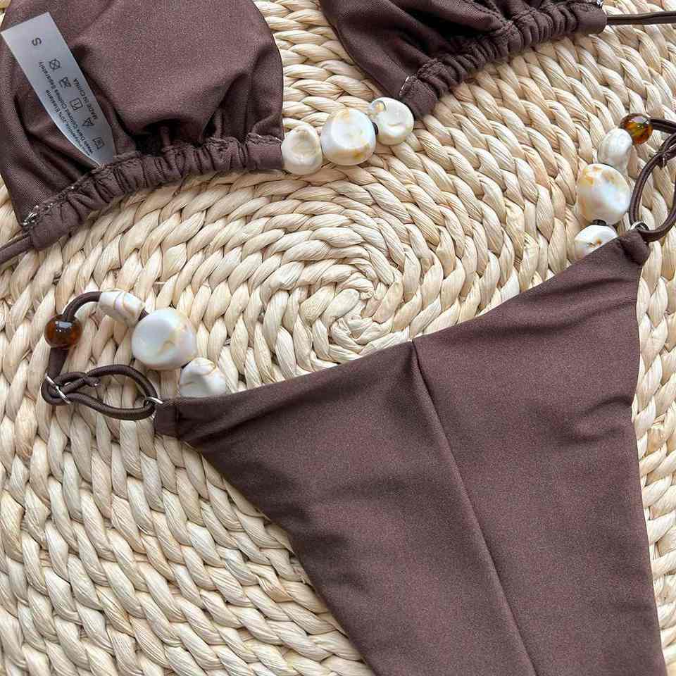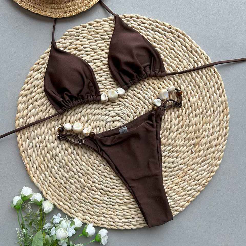 Conjuntos de Bikini de estilo piedra para mujer Tanga brasileña Traje de baño Cuello Halter con Micro sujetador de piedra Traje de baño