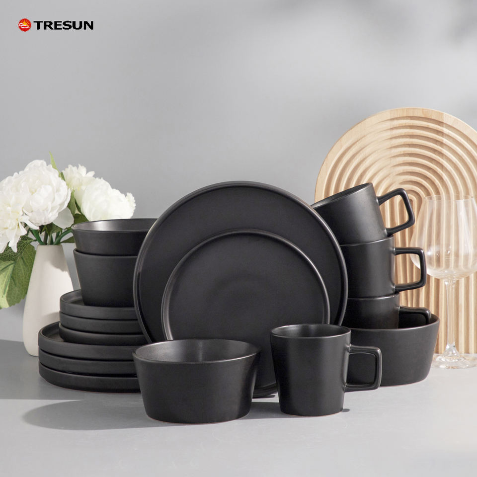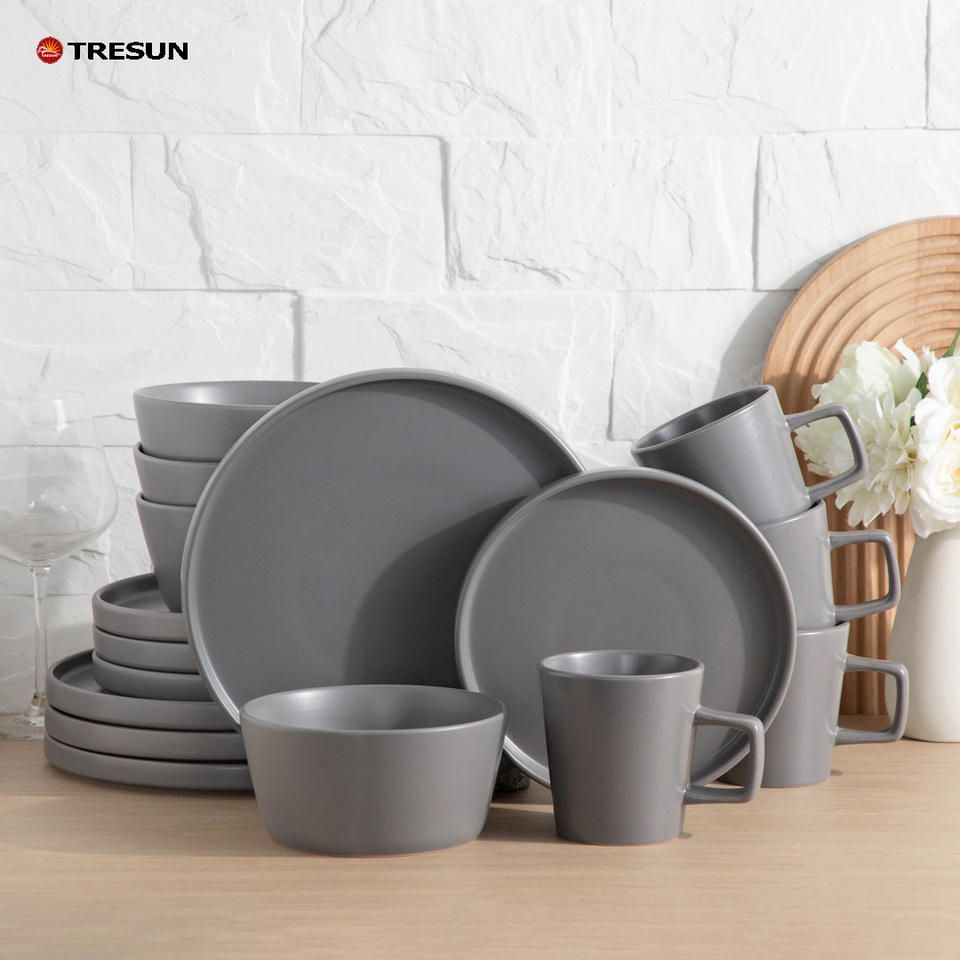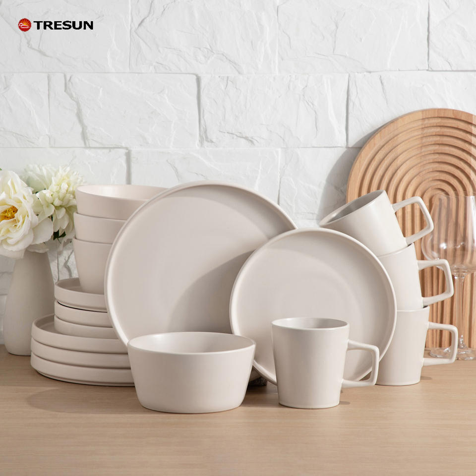 Juego de vajilla de gres, juego de vajilla de cerámica china, vajilla de porcelana nórdica con temática personalizada, juego de vajilla de color blanco mate.