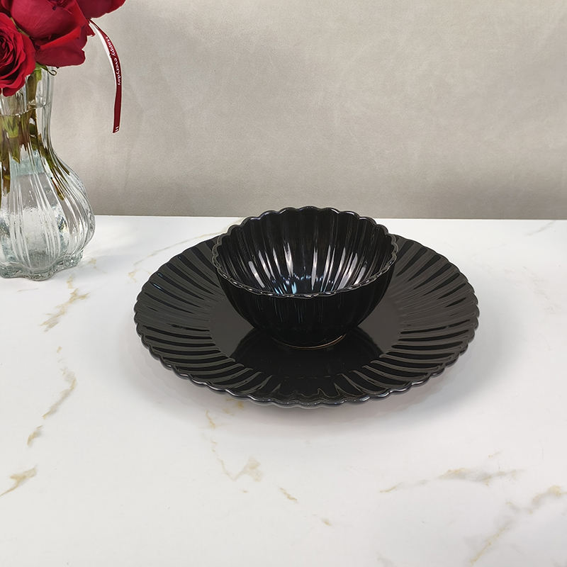 Juego de Vajilla Cromado Bugatti Melodia 50 Piezas Negro Nacarado