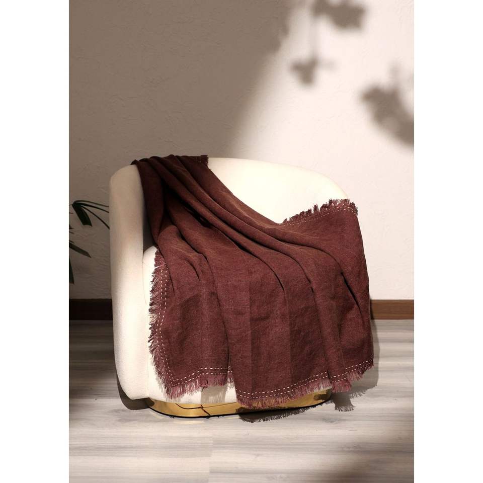 Manta tejida de lino lavado a la piedra con flecos de 52x68 pulgadas para decoración del hogar