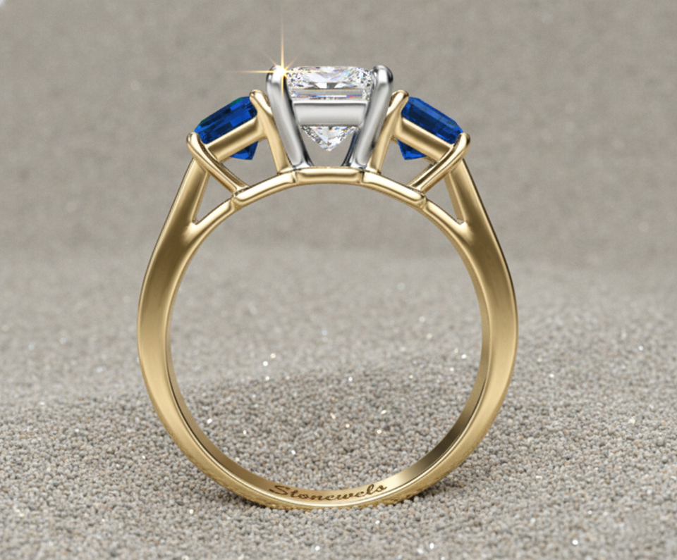 Número de Modelo:Princess Cut Blue Sapphire Three Stone Ring