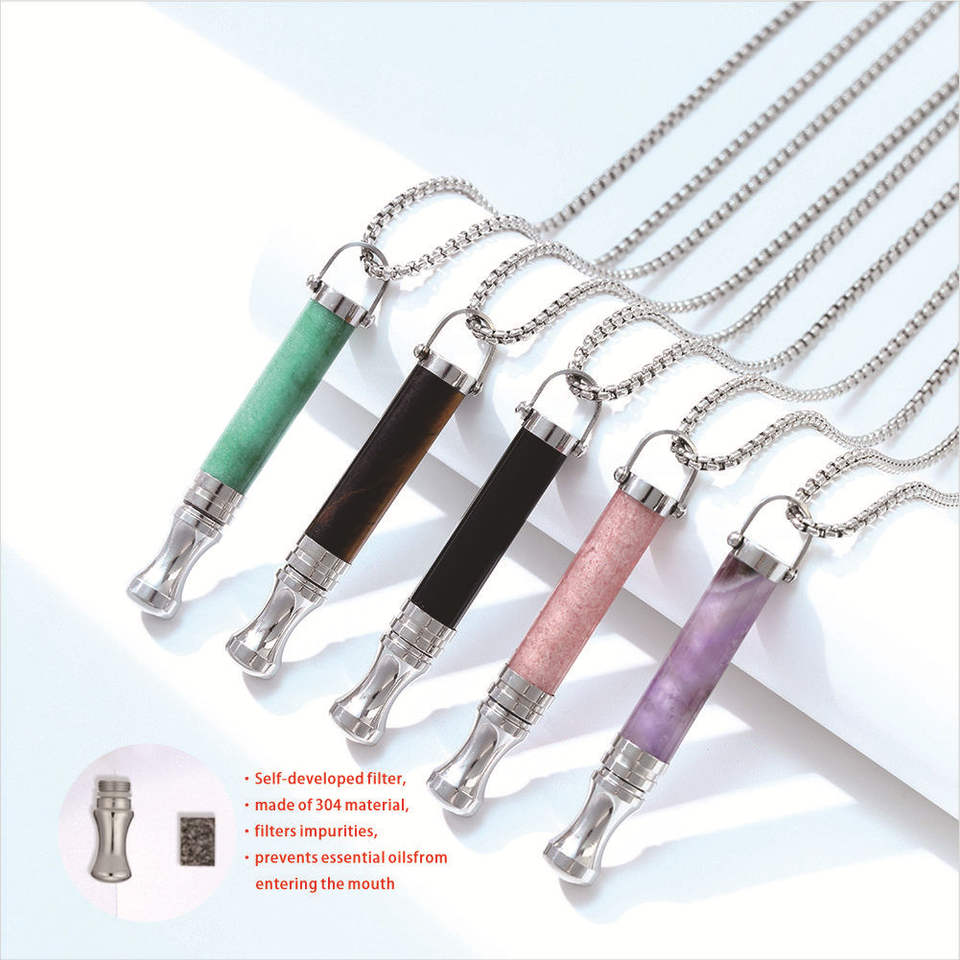 Collar de Acero Inoxidable para Dejar de Fumar | Chapado en Oro de 18K | Perlas de Filtro de Algodón Ajustables | Resistencia al Aliento de Estilo Vintage