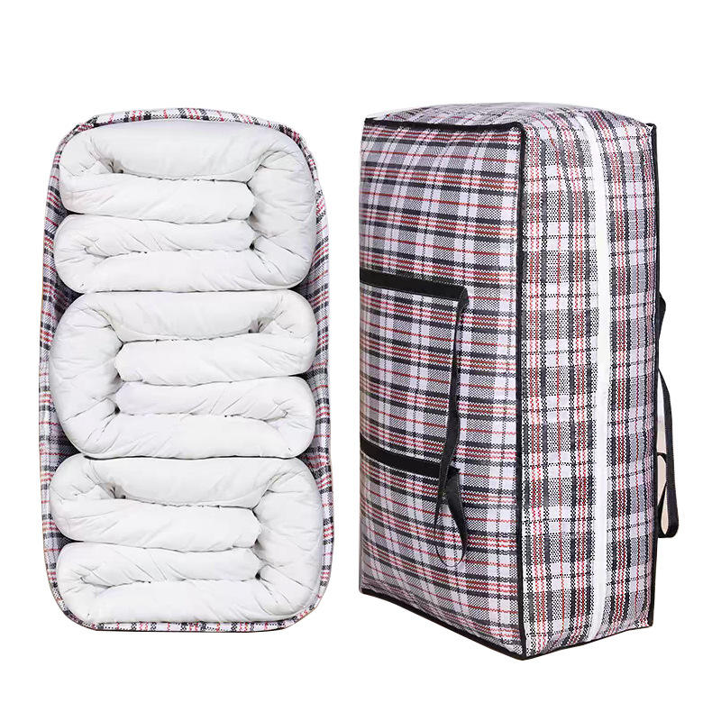 Storage Bags Extra Large Capacity Laminated Wear Resistant Rectangle Moving Packing Bags Red White Blue Woven Pattern