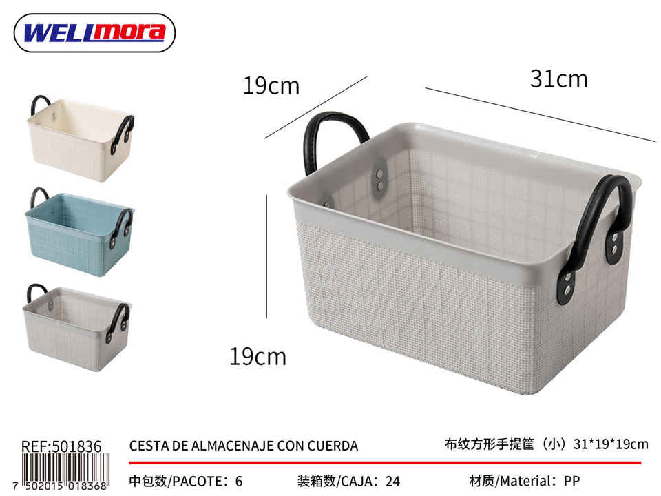 Cesta de Almacenamiento Rectangular de Plástico con Asa para Organización del Hogar