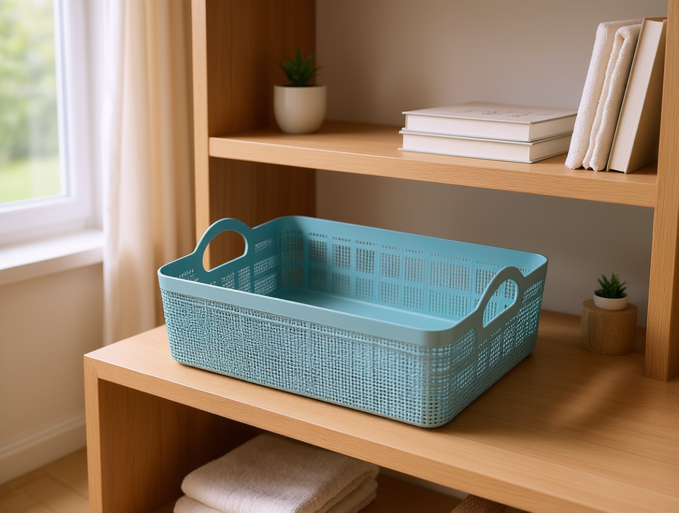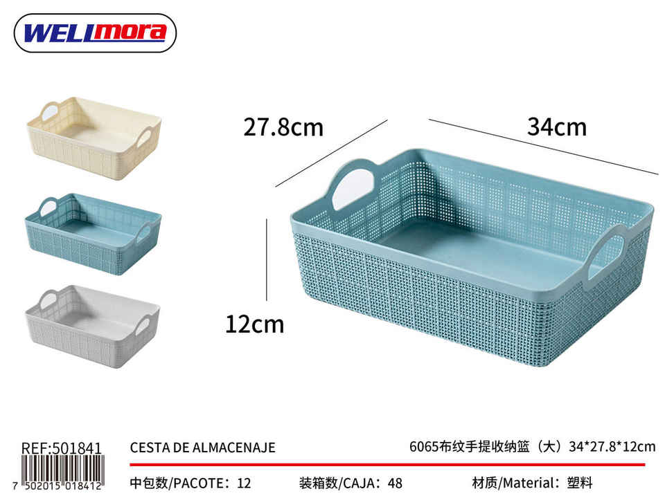 Cesta de Almacenamiento Rectangular de Plástico con Asas, Diseño Simple para Almacenamiento en el Hogar