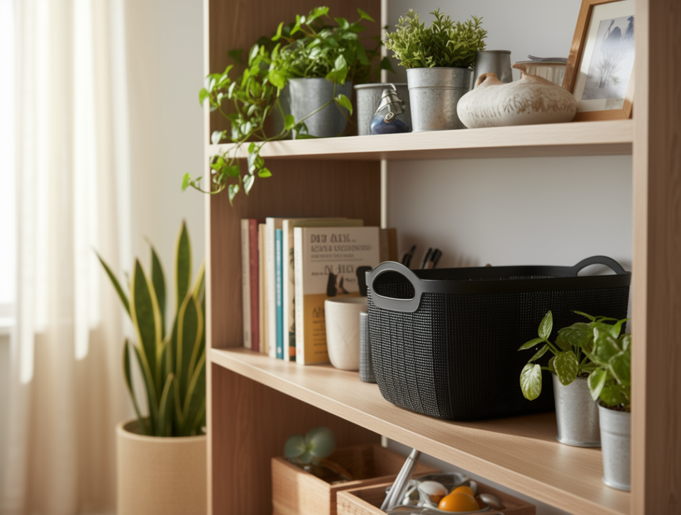 Cesta de Almacenamiento Rectangular de Plástico con Asas, Diseño Moderno para Organización del Hogar