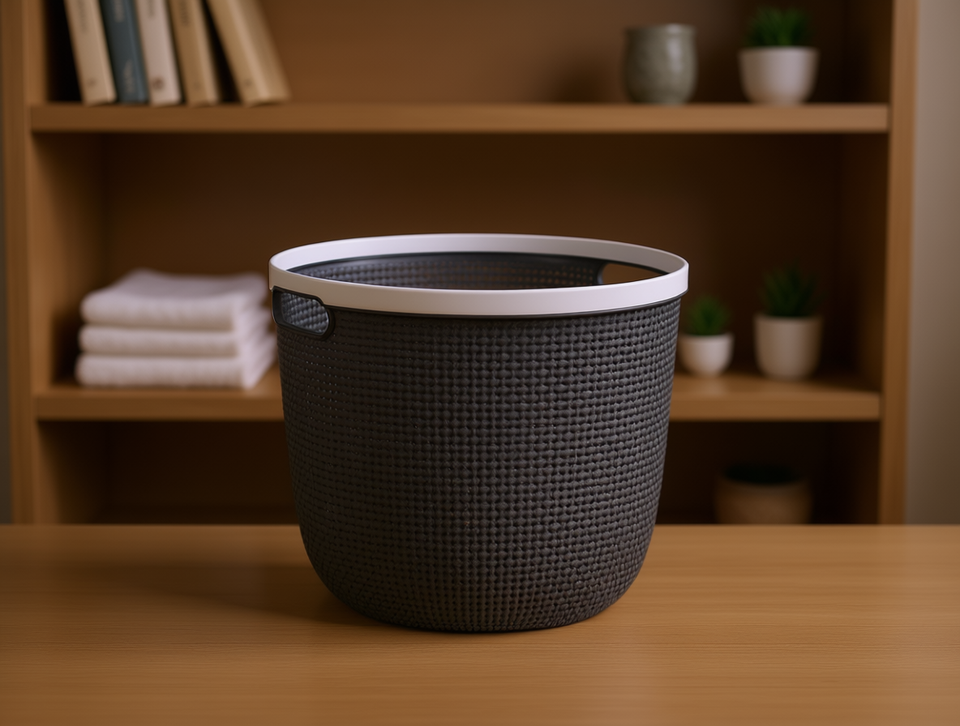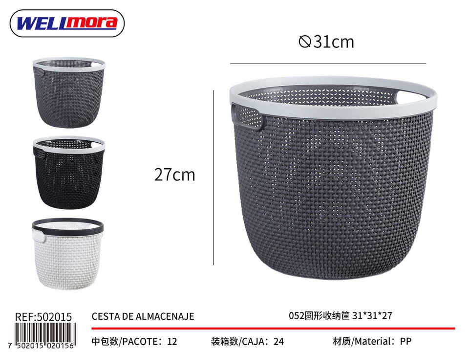 Cesta de Almacenamiento Redonda de Plástico con Asas, Diseño Moderno para Almacenamiento en el Hogar